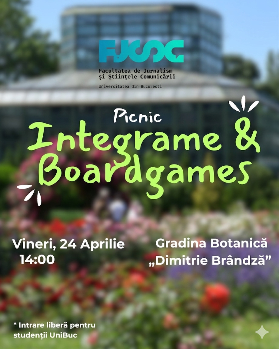 Vino și tu pe 24 aprilie la ora 14:00 în Grădina Botanică „Dimitrie Brândză” și ia-ți un moment de respiro la picnic. Vino cu prietenii, colegii și cu oricine simți că te-ar ajuta să te destrezi puțin. Ascultă muzică bună, dezleagă o integramă și bucură-te alături de noi de soare.